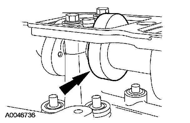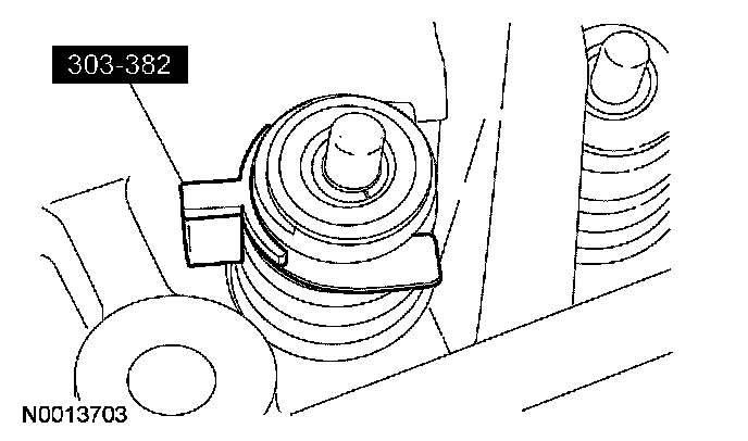 13. CAUTION: If one or both tensioner mounting bolts are loosened or removed, the tensioner-sealing bead must be inspected for seal integrity. Any cracks, tears, cuts or separation from the tensioner body or permanent compression of the seal bead, will require replacement of the tensioner.