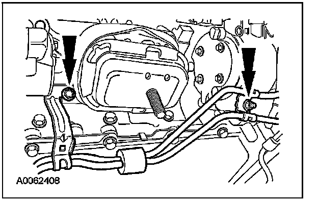 3. Remove the bolt and the nut. Position the transmission cooler tubes aside.