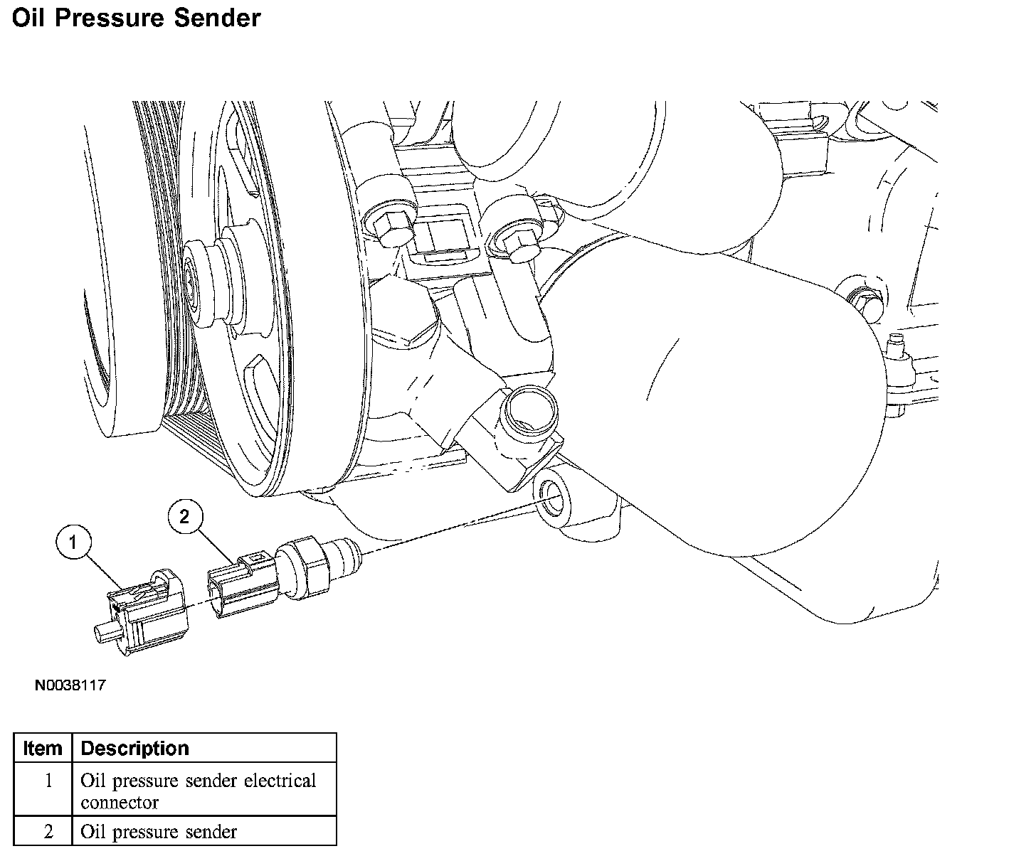 3. Disconnect the oil pressure sensor electrical connector and remove the oil pressure sensor.
