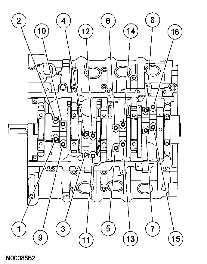 9. NOTE: The jack screws are a part of the main bearing cap assembly, and are screwed into the main caps, not the cylinder block.
