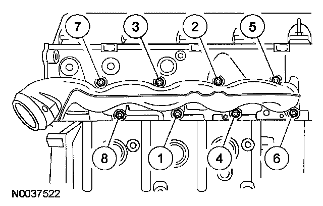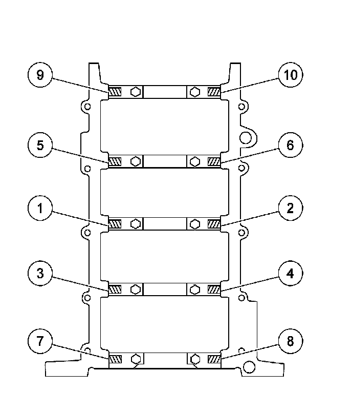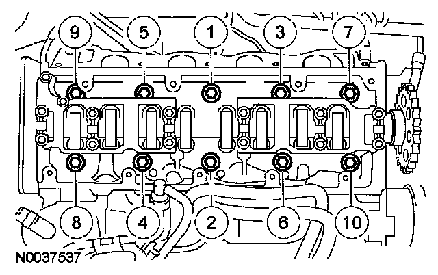 10. Install the 10 bolts and tighten in 2 stages, in the sequence shown.