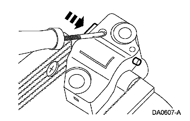 27. Using a small screwdriver or pick, push back and hold the ratchet mechanism.