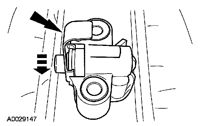 29. Install a paper clip into the hole of each tensioner housing to hold the ratchet assembly and plunger in during installation.