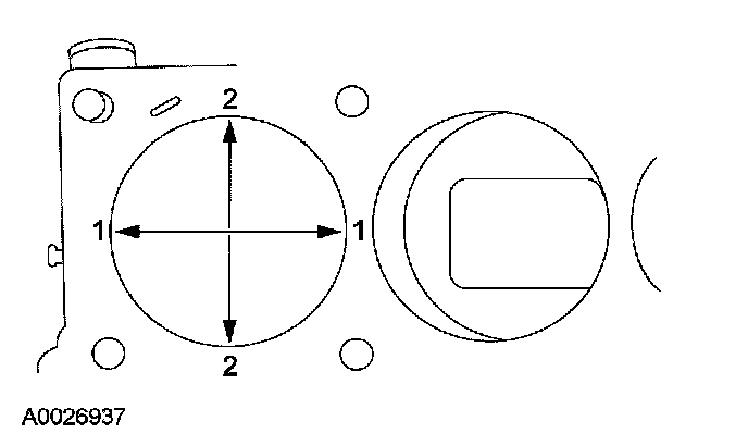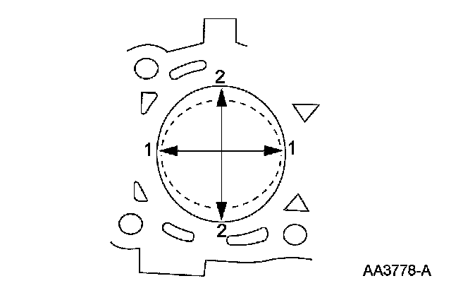 1. Measure the cylinder bore in 2 directions. The difference is the out-of-round. Verify the out-of-round is within the wear limit and bore the cylinder to the next oversize limit.