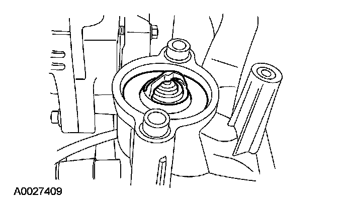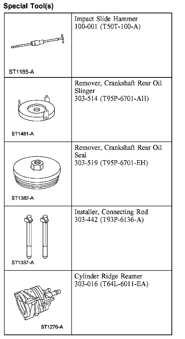 CAUTION: During engine repair procedures, cleanliness is extremely important. Any foreign material (including any material created while cleaning gasket surfaces) that enters the oil passages, coolant passages or the oil pan can cause engine failure.