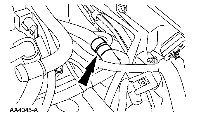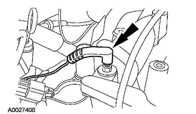 23. Disconnect the knock sensor (KS) electrical connector and the wiring harness pin-type retainer.