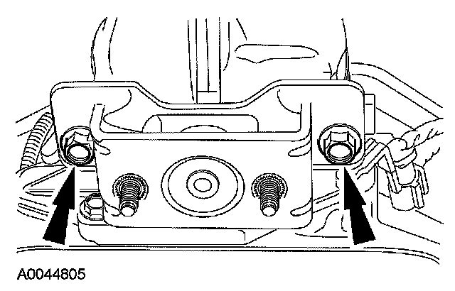 9. Lower the transmission and install the 2 transmission insulator nuts.
