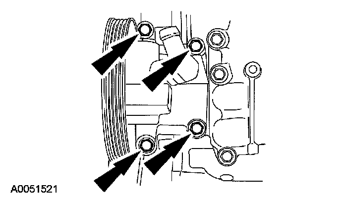 18. Install the power steering pump and the 4 bolts.