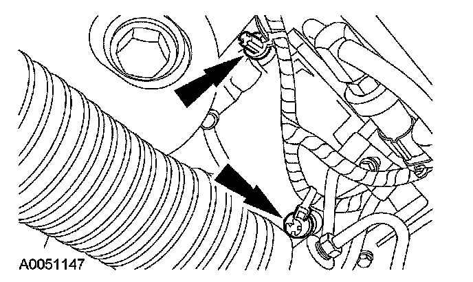 23. Position the transmission oil cooler tubes and install the bolt.