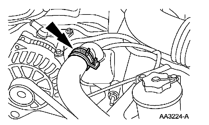 34. Connect the upper radiator hose to the hose connection.