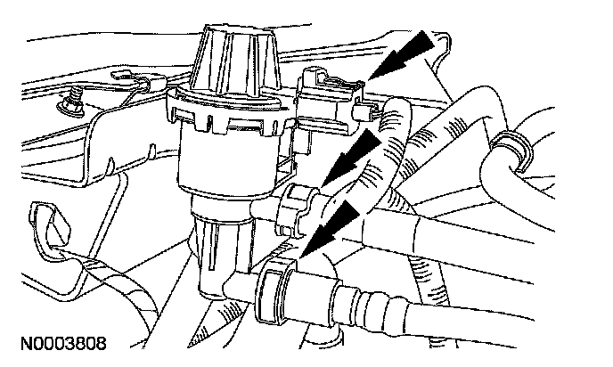 42. Connect the 2 hoses and the canister purge valve electrical connection.