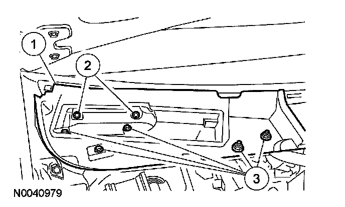 49. Install the wiper mounting arm and pivot shaft. For additional information, refer to Wiper and Washer Systems.