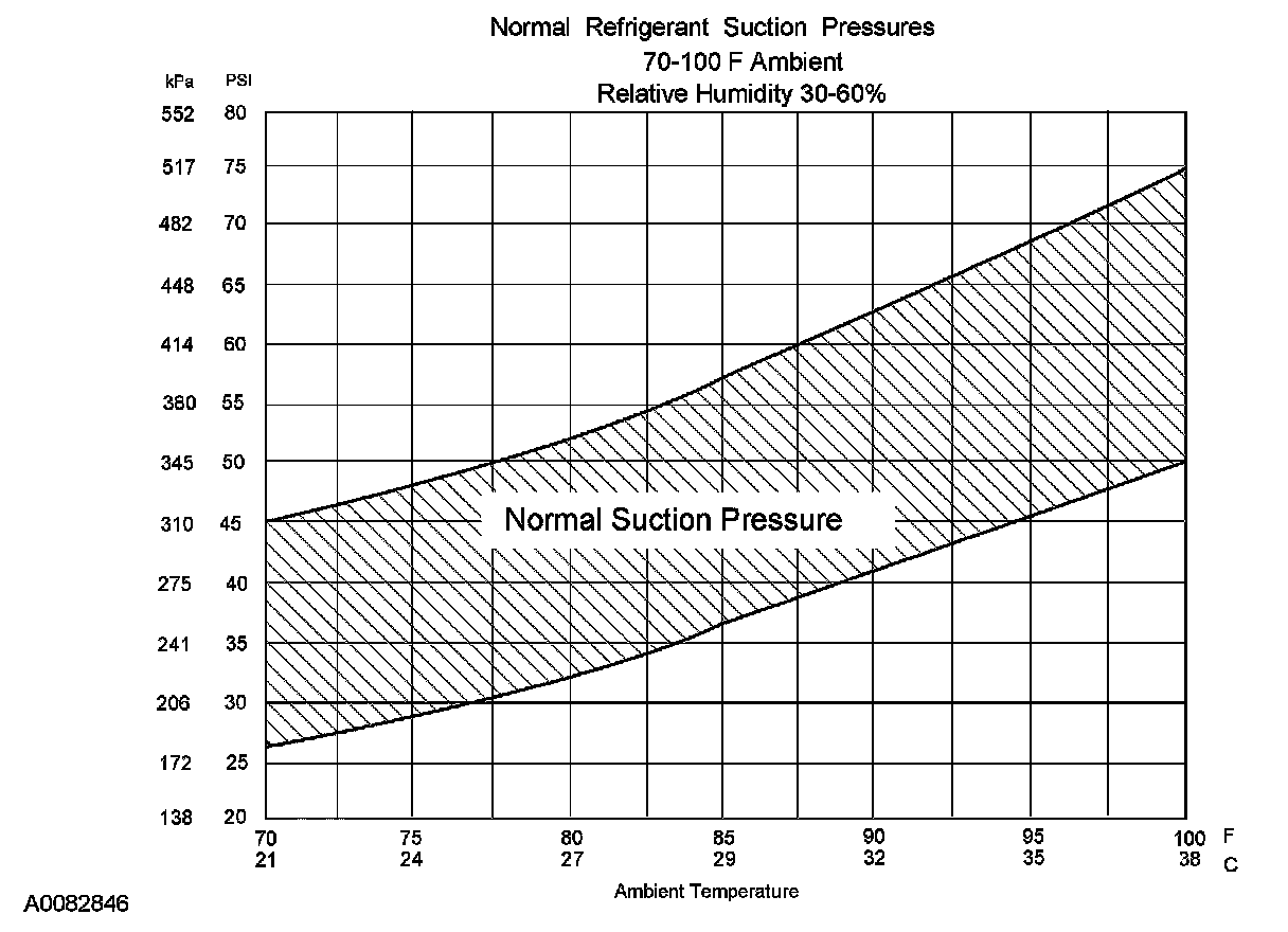 - The system performance can be evaluated and diagnosed by analysis of the compressor suction and discharge pressures. The following procedure is used to determine if the system is operating at normal pressures.