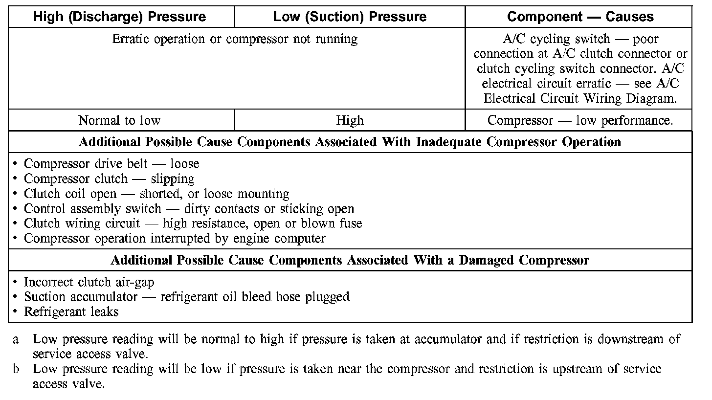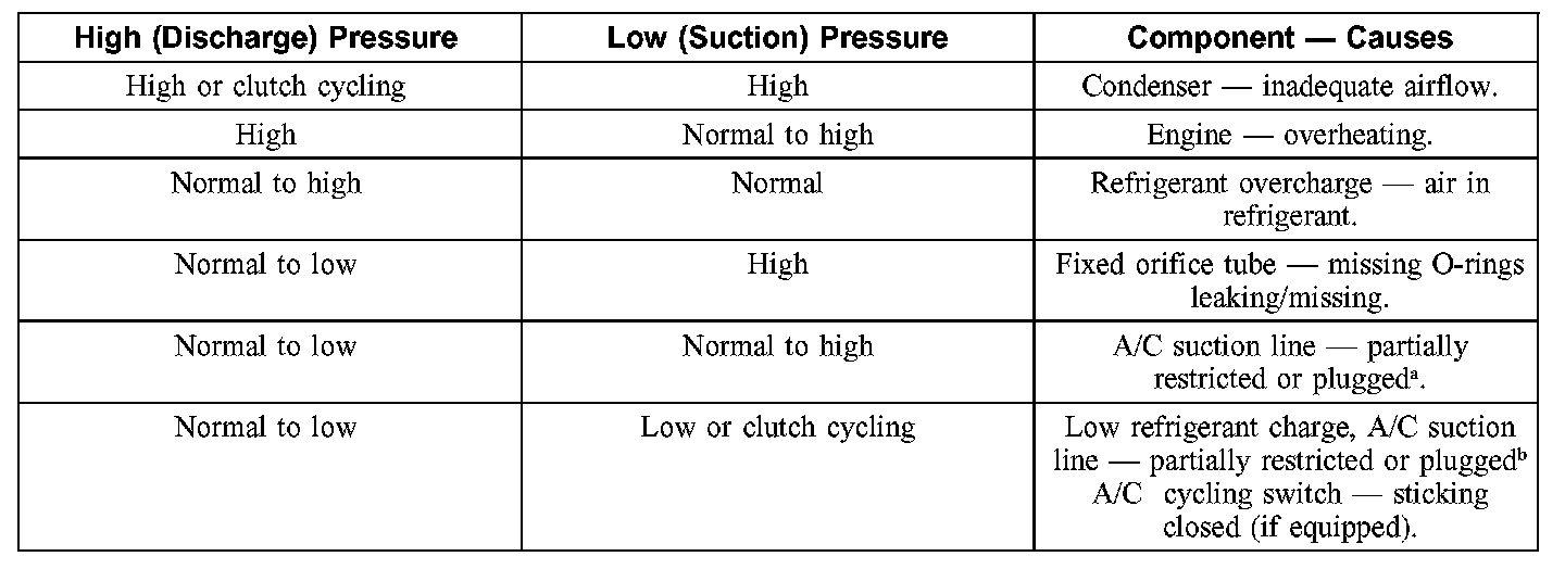 1. NOTE: The table is used to guide diagnosis of the refrigerant system if operating pressures are outside normal limits.