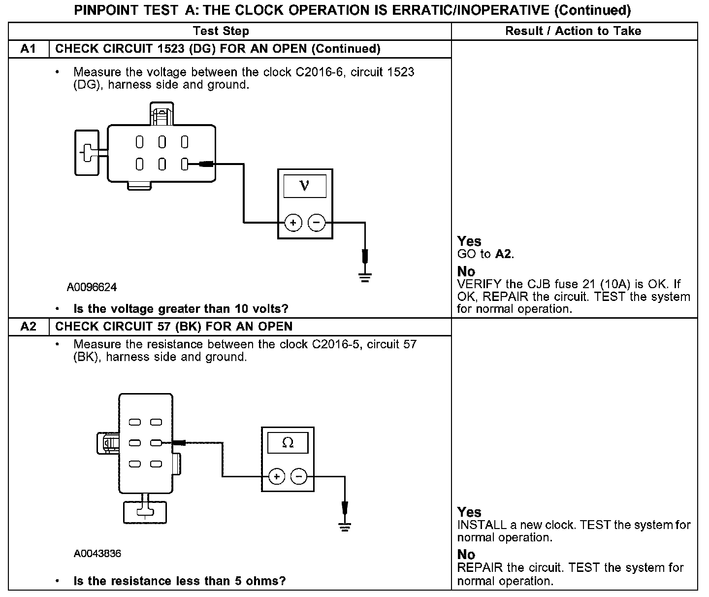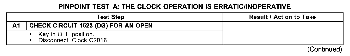 PINPOINT TEST A: THE CLOCK OPERATION IS ERRATIC/INOPERATIVEA1: