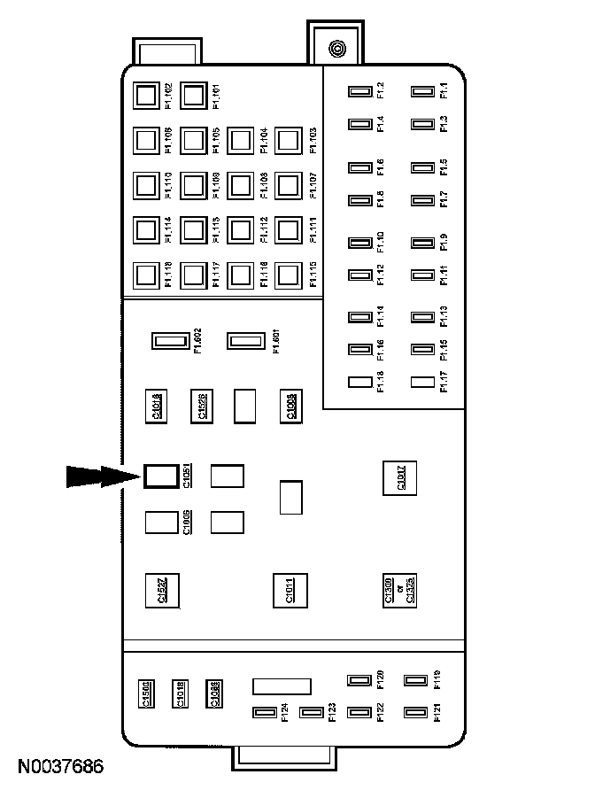 1. NOTE: The fuel pump relay is located in the smart junction box (SJB) location C1051.