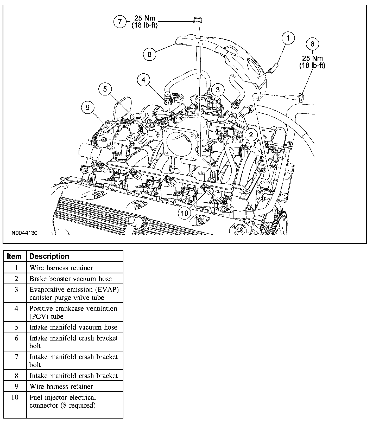 10. Disconnect the intake manifold vacuum hose from the throttle body spacer and position aside.