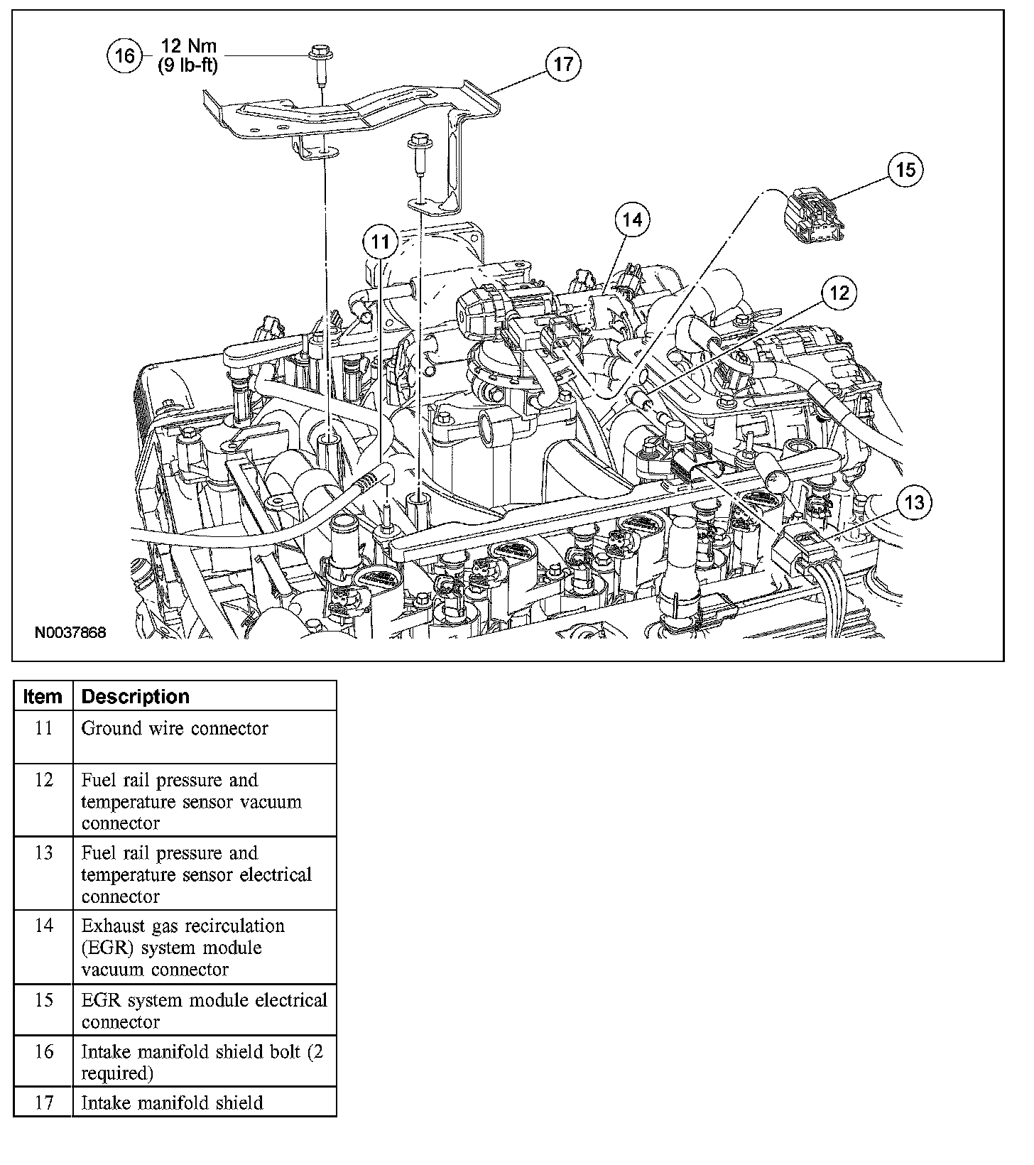 18. Remove the 2 intake manifold shield bolts and the shield.