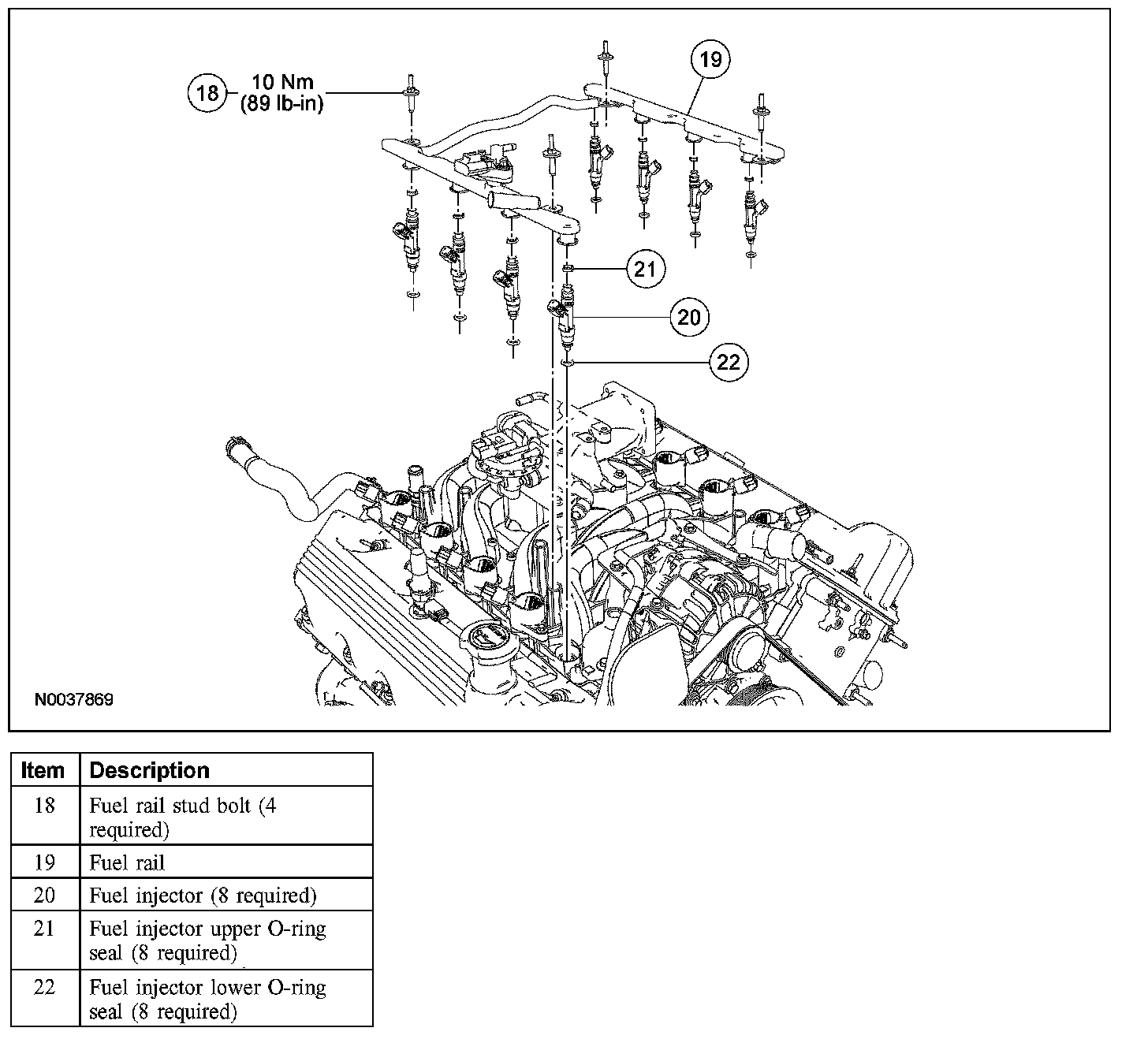 20. Remove the fuel rail and the fuel injectors as an assembly.