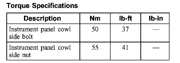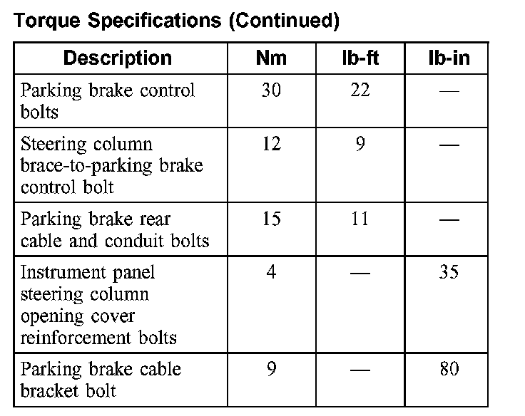 Torque Specifications: