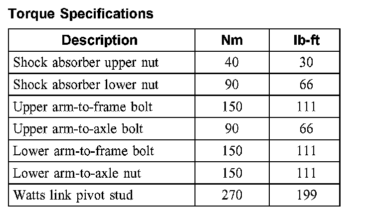 Torque Specifications: