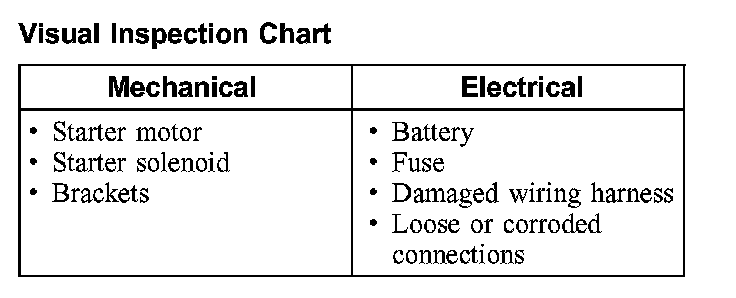 2. Visually inspect for obvious signs of mechanical and electrical damage; refer to the chart.