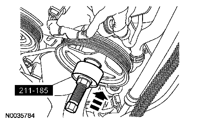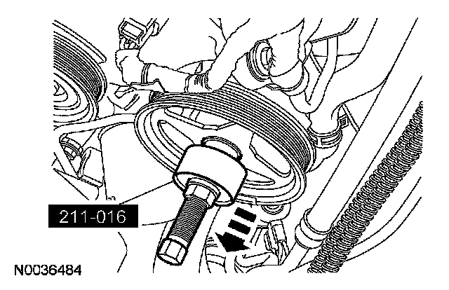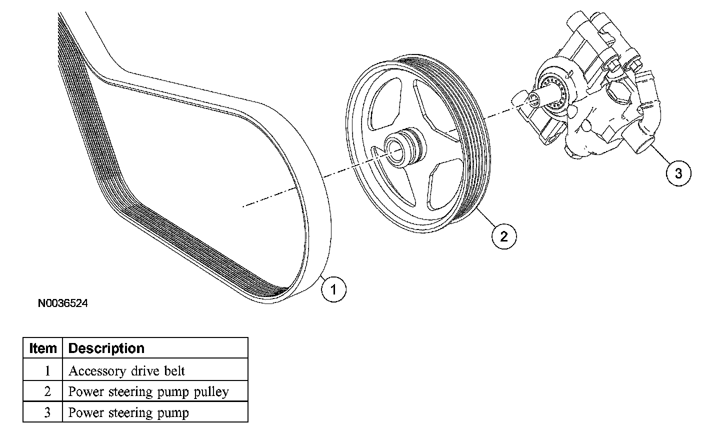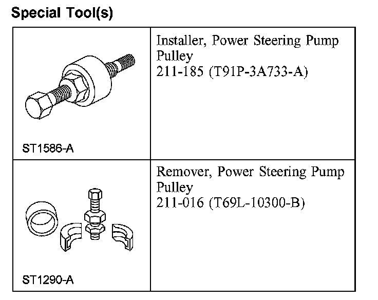 CAUTION: Installation of a new power steering pump pulley is necessary after being removed and installed 2 times.