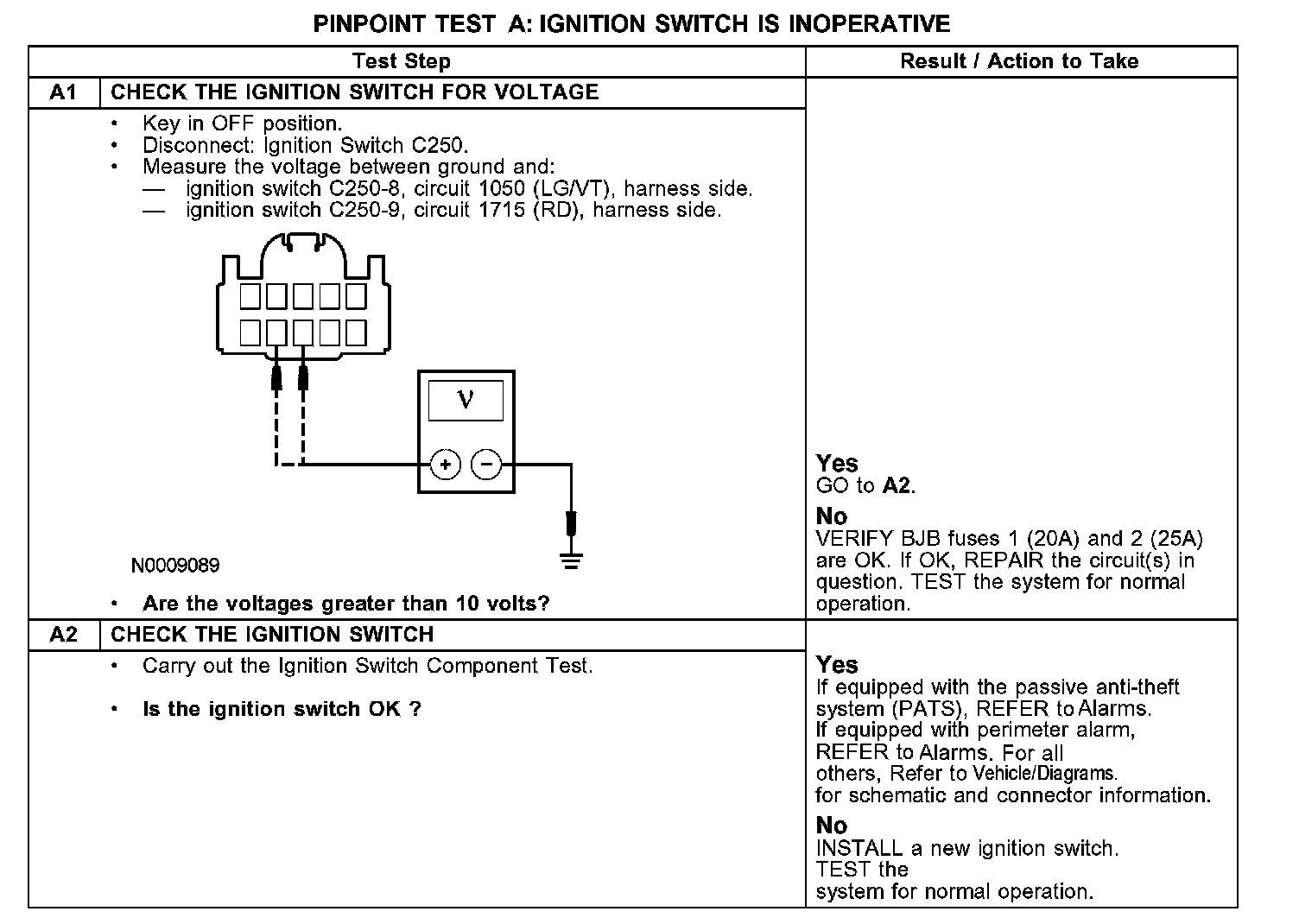 Test A: The Ignition Switch is Inoperative