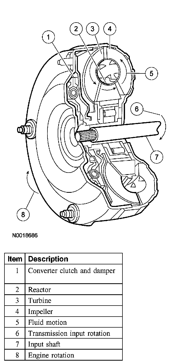 Torque ConverterThe torque converter transmits and multiplies torque. The torque converter is a 4-element device: