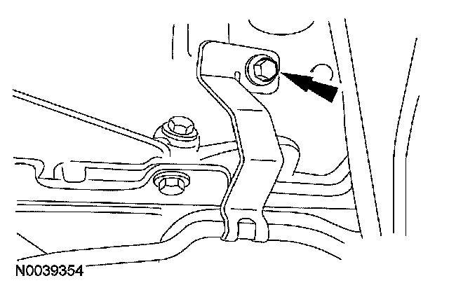 8. Remove the bolt retaining the line routing bracket to the engine and remove the transmission fluid cooler tube(s).