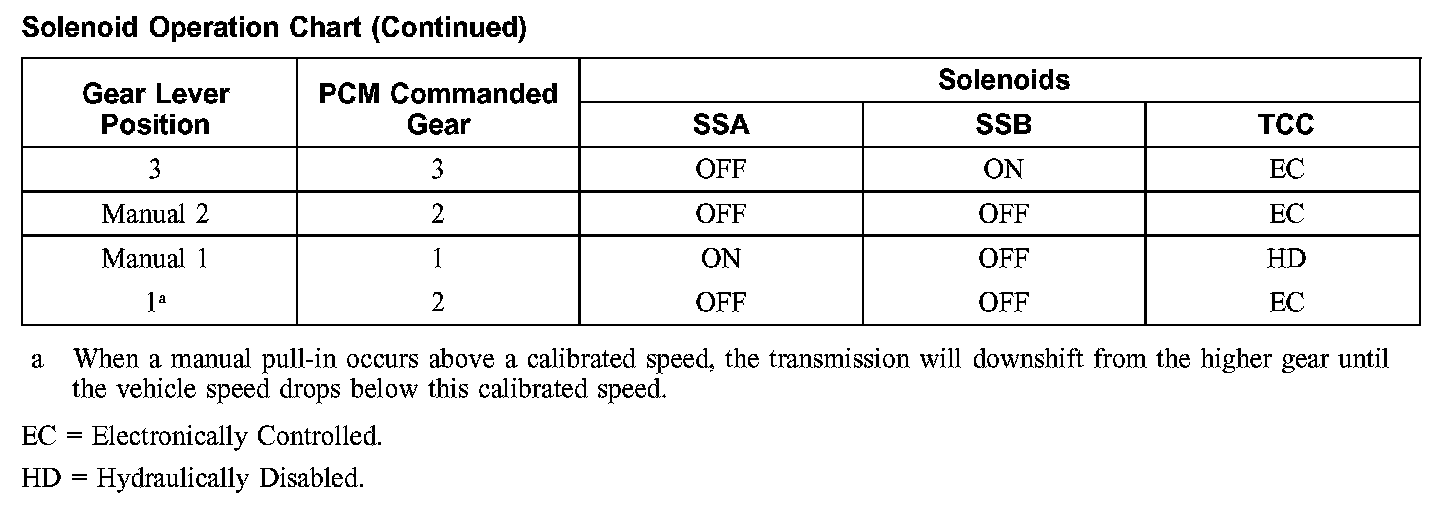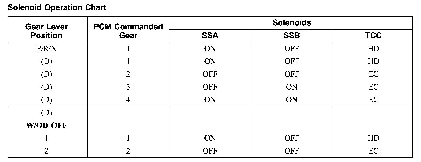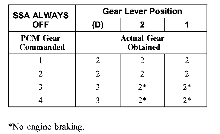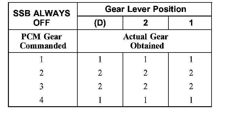 Shift Solenoid Failure Mode Chart "Always off"