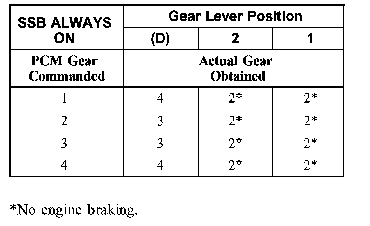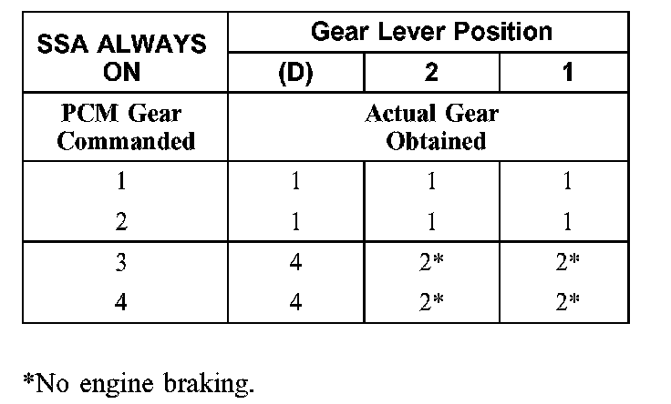 Shift Solenoid Failure Mode Chart "Always On"