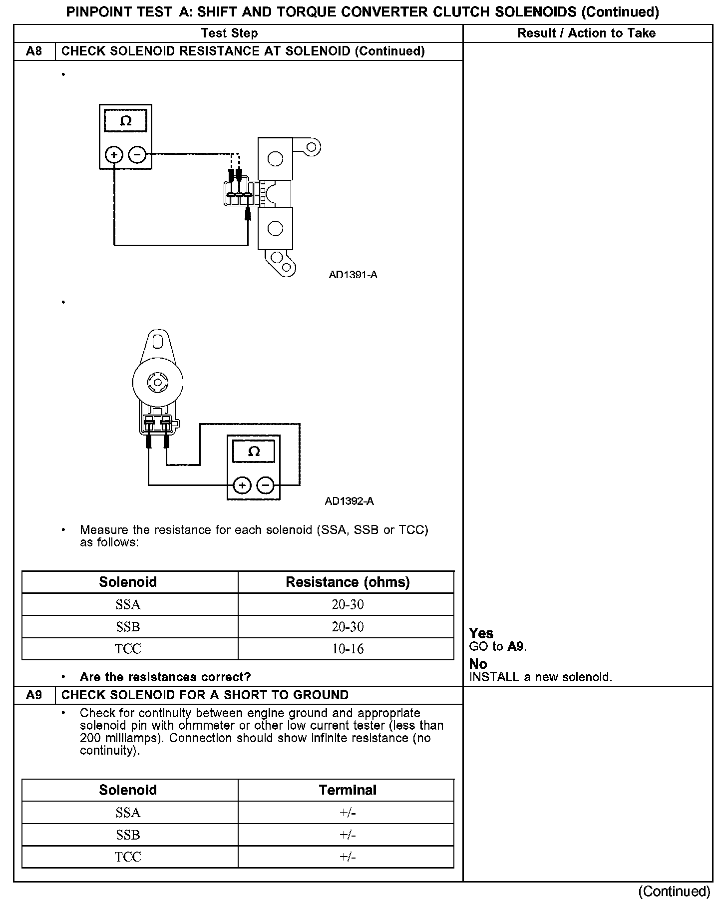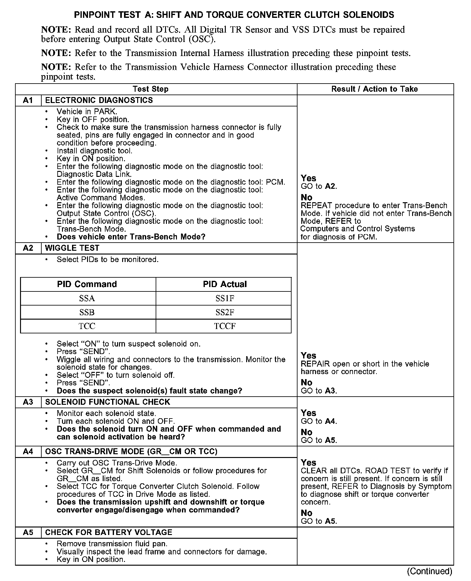 PINPOINT TEST A: SHIFT AND TORQUE CONVERTER CLUTCH SOLENOIDS