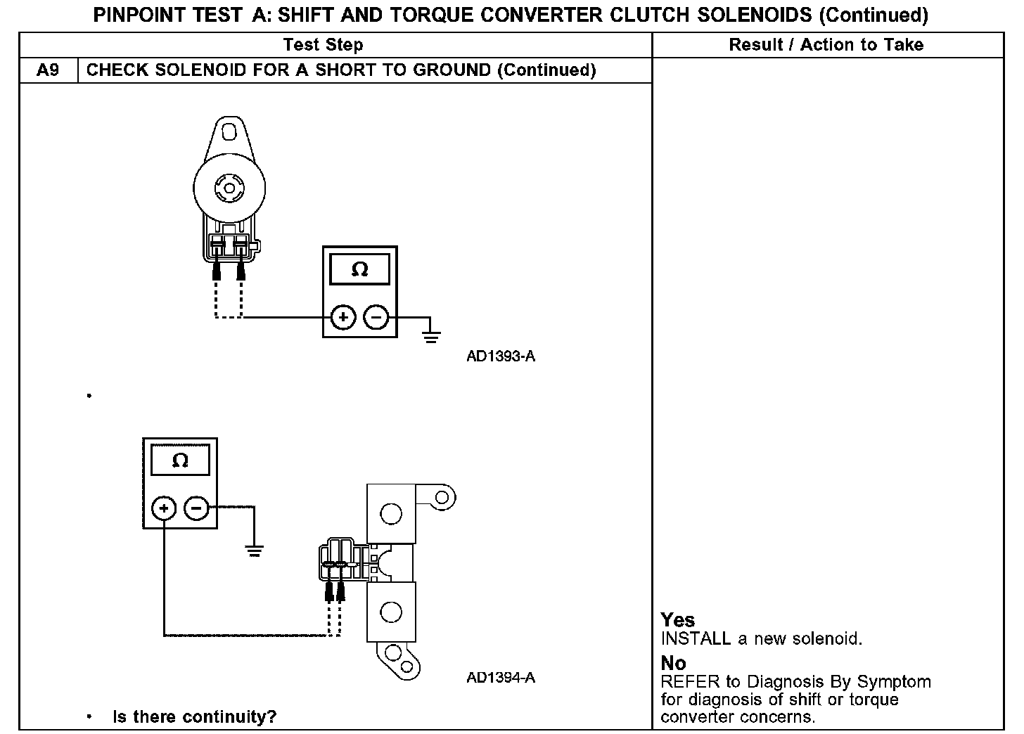 Use the following shift solenoid operation information when carrying out pinpoint Test A.
