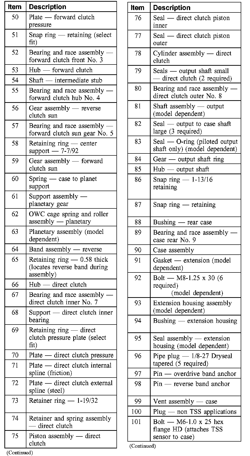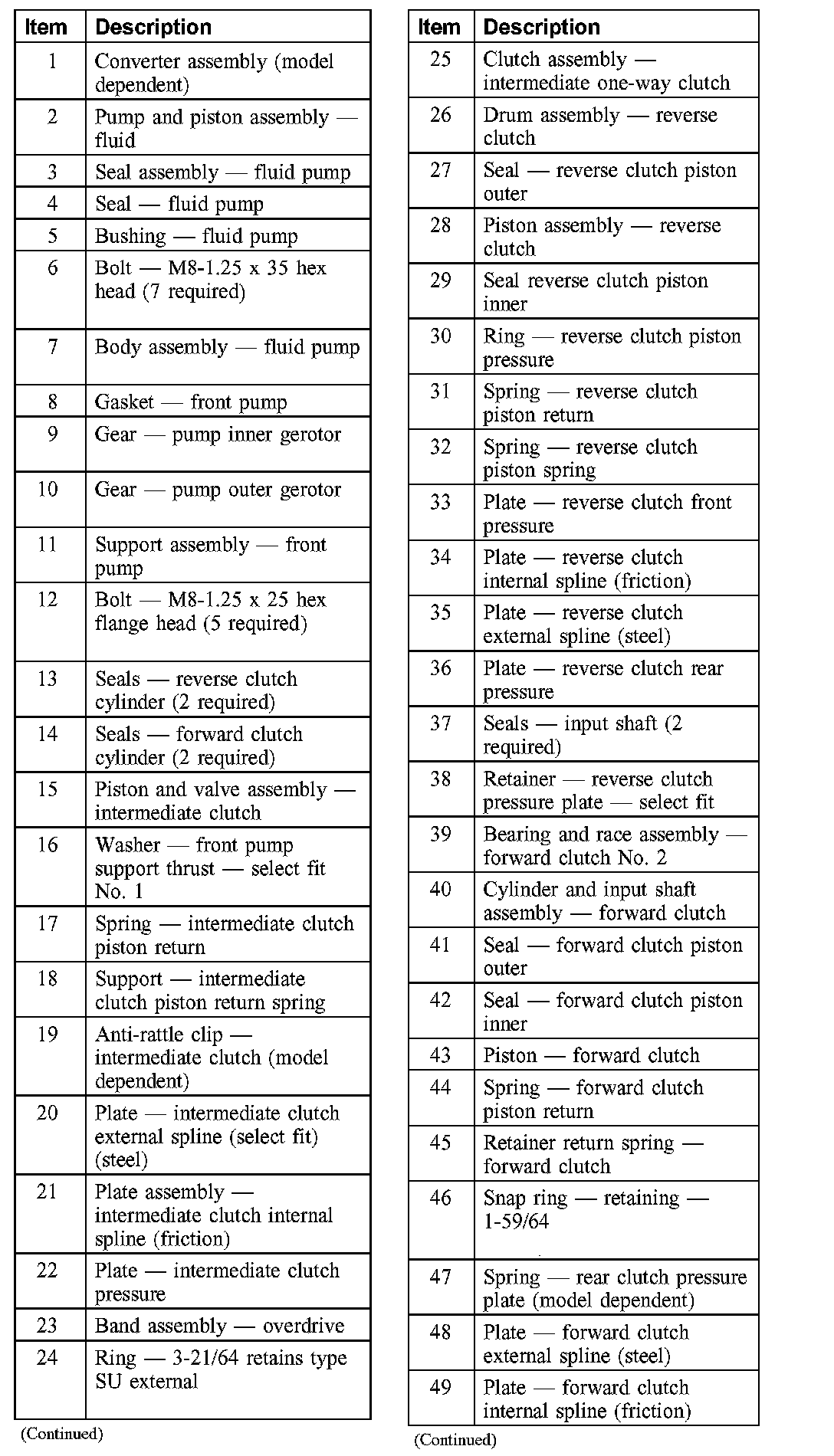 Many components and surfaces in the transmission are precision machined. Careful handling during disassembly, cleaning, inspection and assembly can prevent unnecessary damage to machined surfaces.