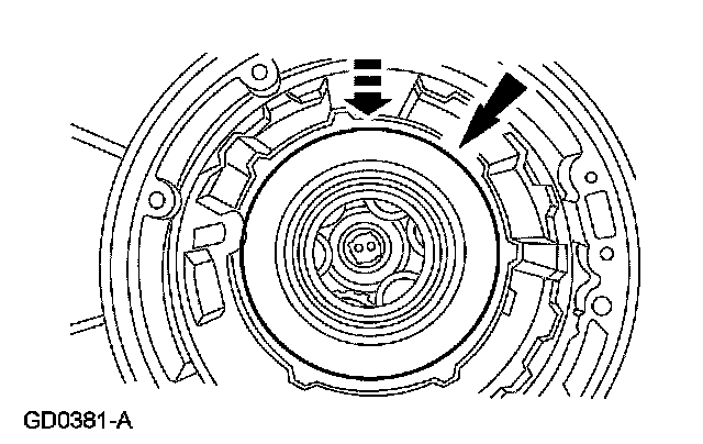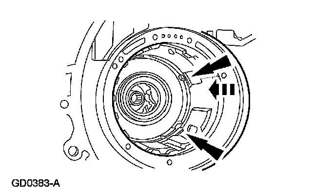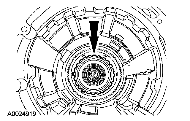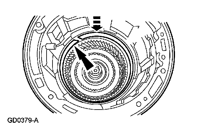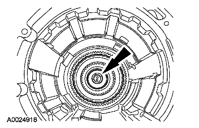 17. NOTE: Make sure the reverse clutch cylinder lugs are completely seated in the notches of the reverse sun gear.
