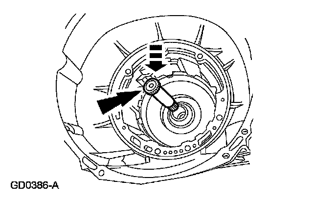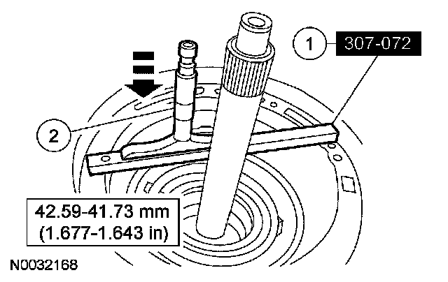 2 Maintaining downward pressure, use a depth micrometer to measure and verify intermediate clutch clearance is within specification.