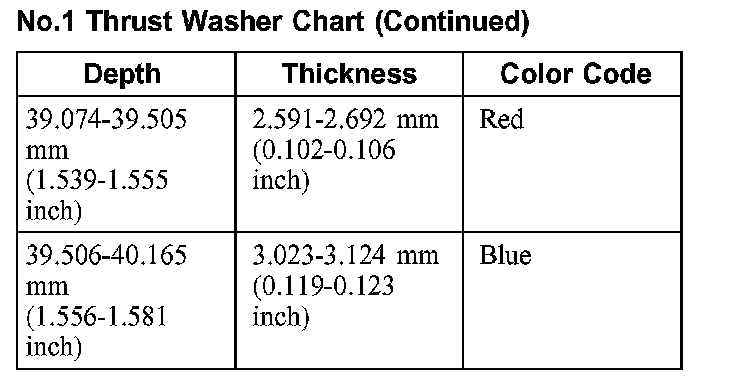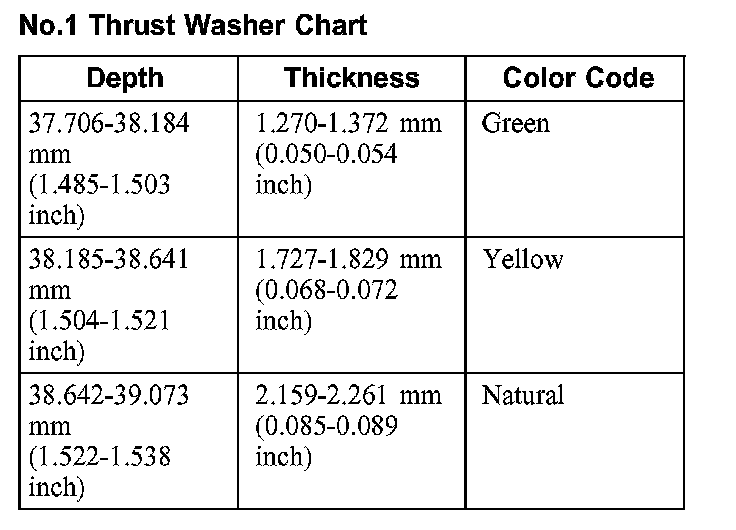 No.1 Thrust Washer Chart: