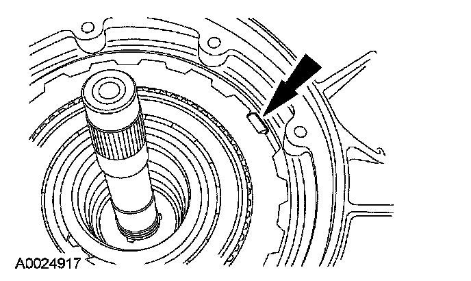 11. NOTE: When installing the center support retaining ring the opening of the center support retaining ring should be toward the hole in the case where the turbine shaft speed (TSS) sensor would go.