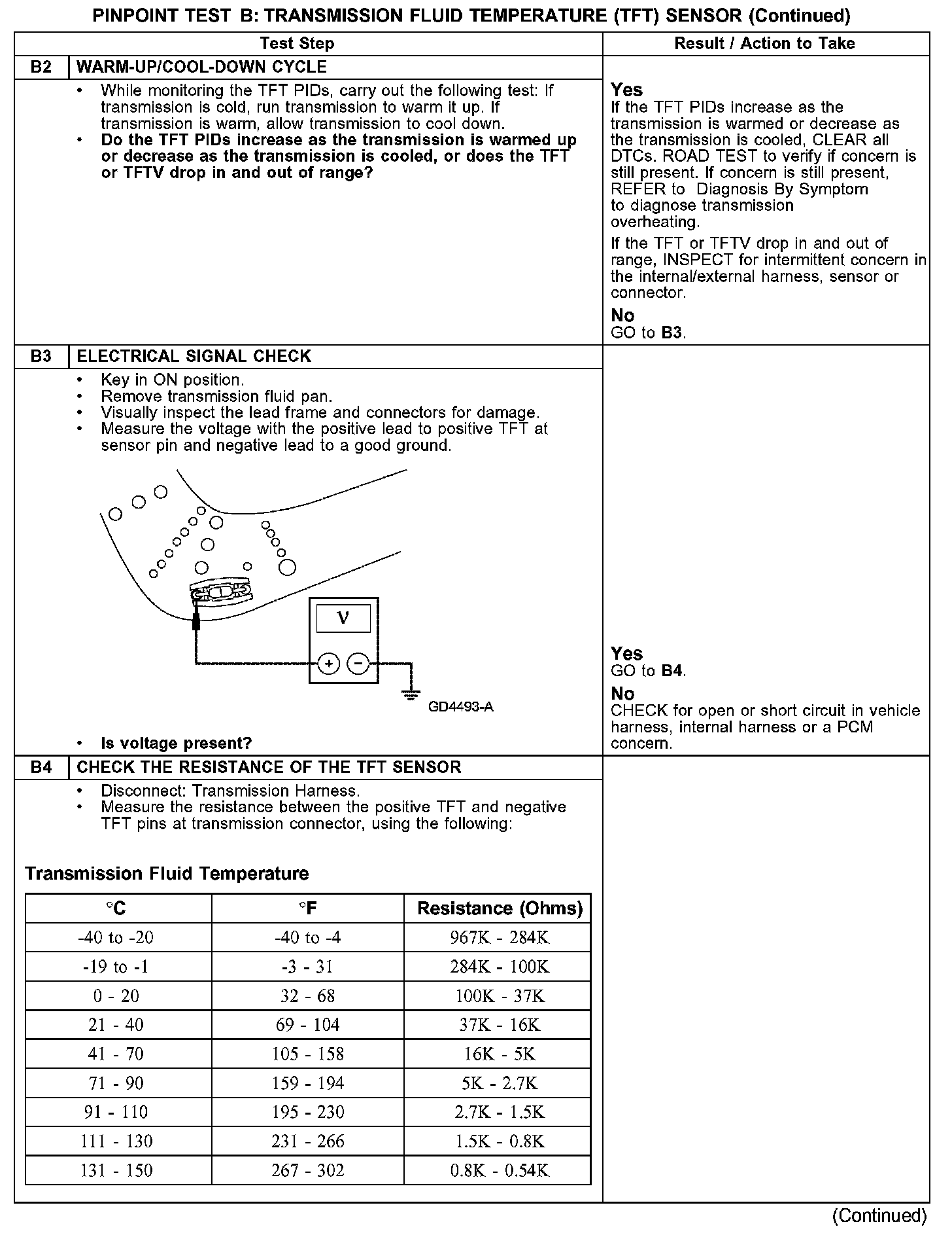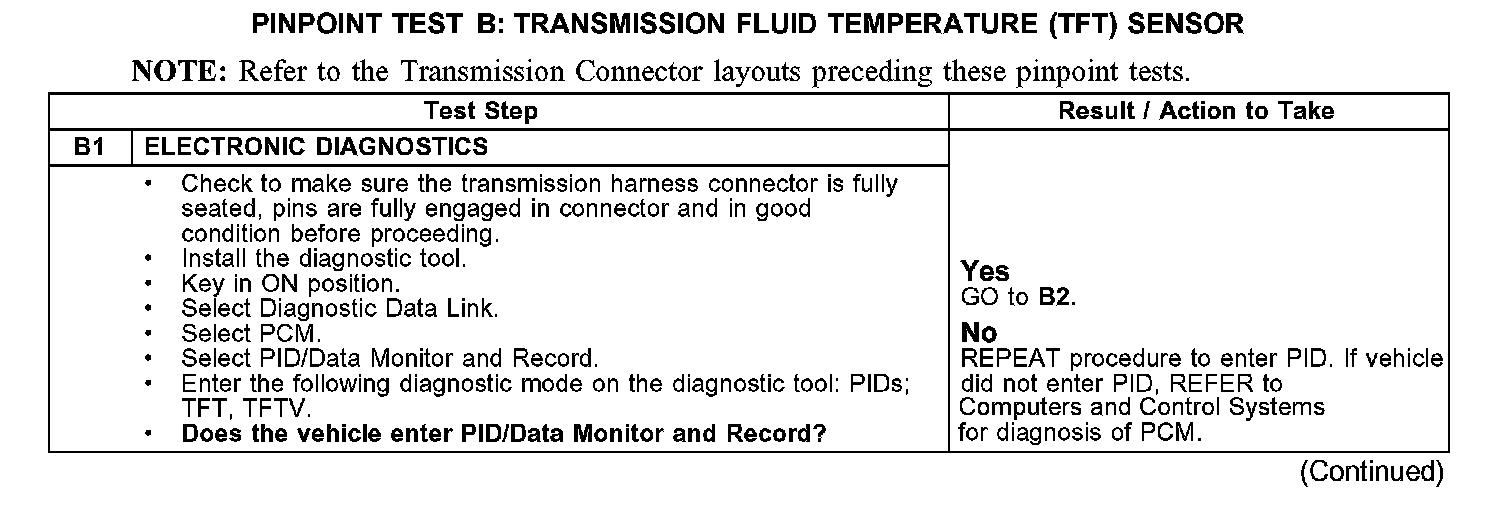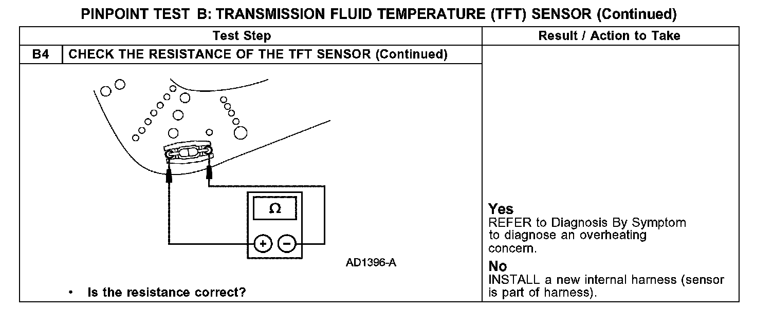 PINPOINT TEST B: TRANSMISSION FLUID TEMPERATURE (TFT) SENSOR