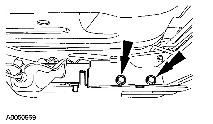 14. Remove the bolts and remove the parking brake cable bracket and position aside.