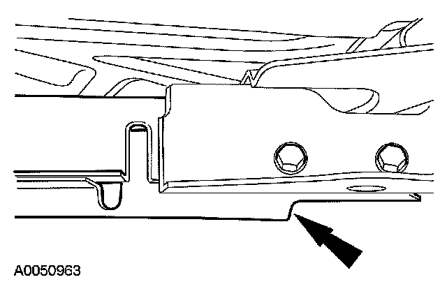 1. Position the LH side of the crossmember into the crossmember pocket and loosely install the bolts.