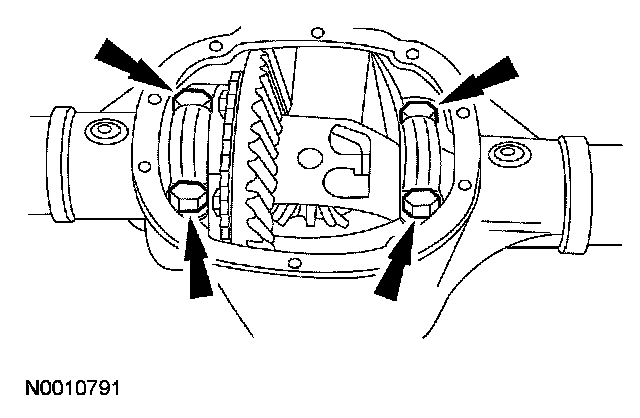 2. CAUTION: Index-mark the position of the differential bearing caps, as arrows may not be visible. The differential bearing caps must be installed in their original locations and positions.