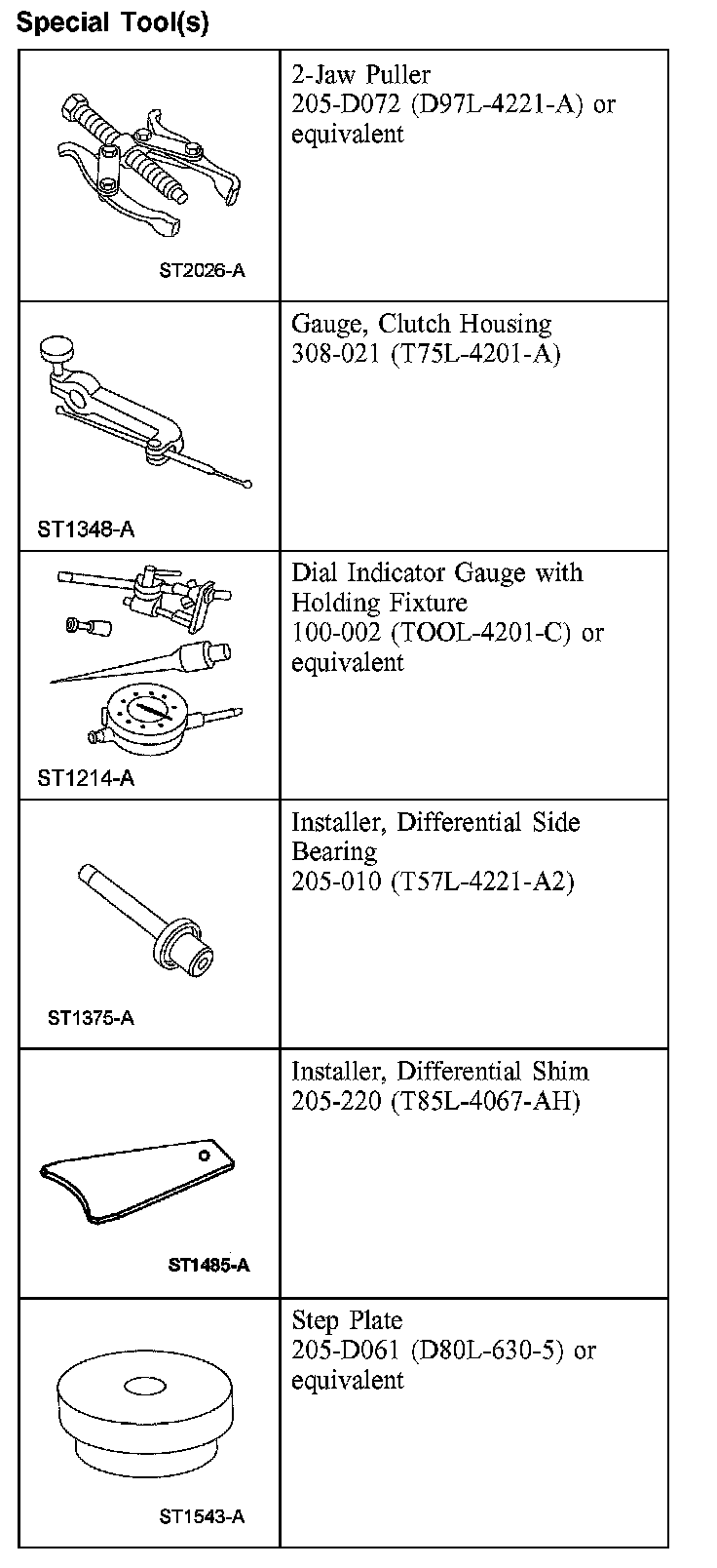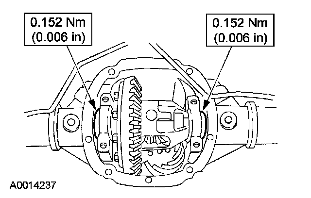 16. To establish differential bearing preload, increase both left and right differential bearing shim sizes by the specification shown.