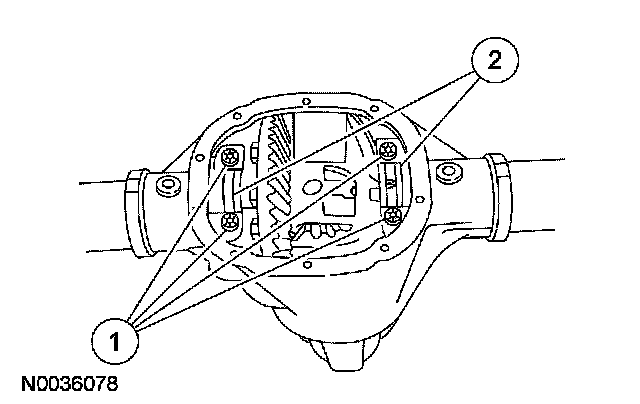 6. CAUTION: Always install the differential bearing caps in their identified locations and positions.