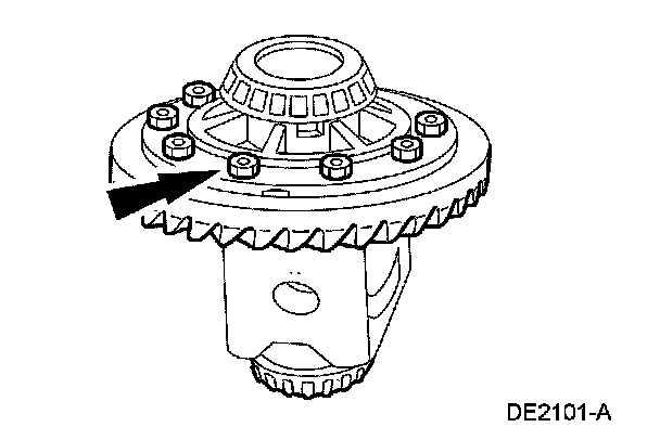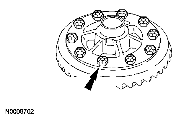 9. CAUTION: Do not damage the differential ring gear bolt hole threads.