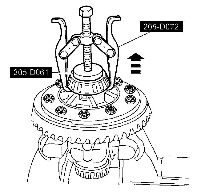 17. Using the special tool, fully seat the differential bearing shims. Make sure the assembly rotates freely.