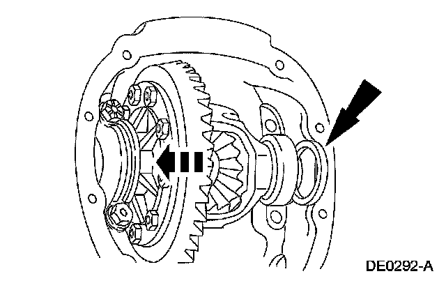 7. Install progressively larger differential bearing shims on the right side until the largest shim selected can be installed by hand.