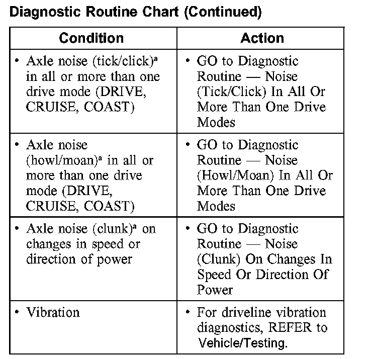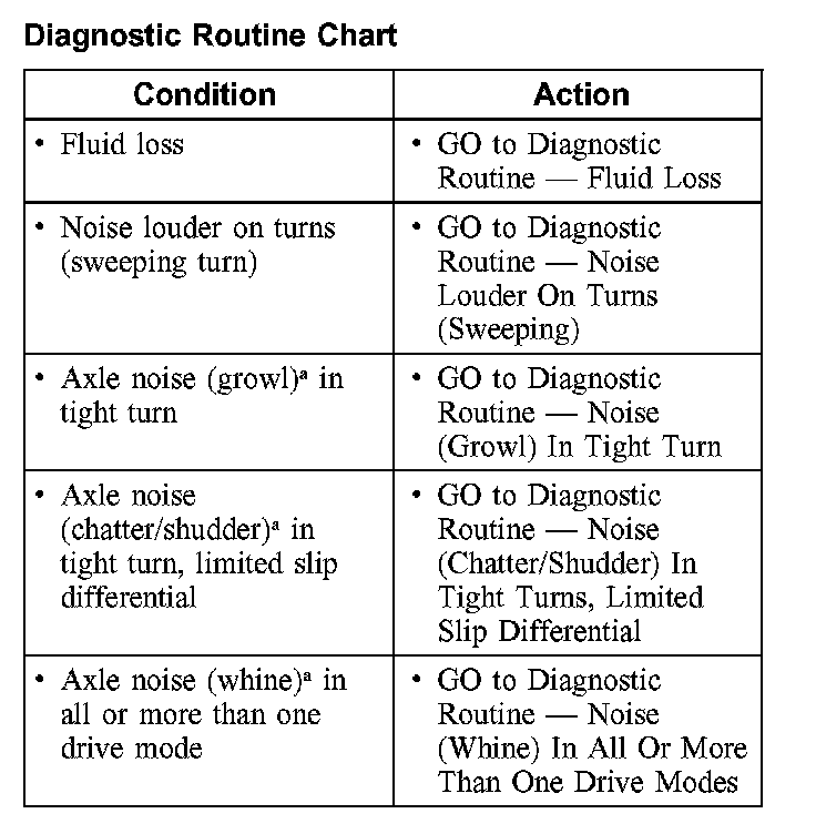 Certain rear axle and driveline concern symptoms are also common to the engine, transmission, rear wheel bearings and tire. For this reason, be sure the cause of the concern is in the axle before repairing or installing any axle components.