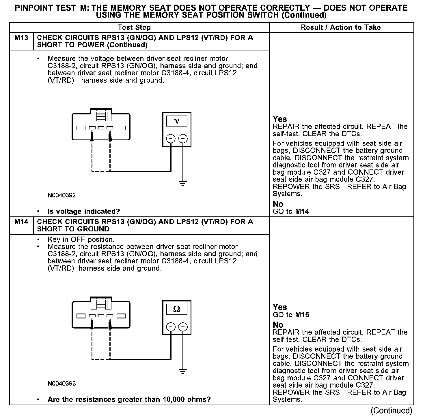 PINPOINT TEST M: THE MEMORY SEAT DOES NOT OPERATE CORRECTLY - DOES NOT OPERATE USING THE MEMORY SEAT POSITION SWITCHM1-M2: